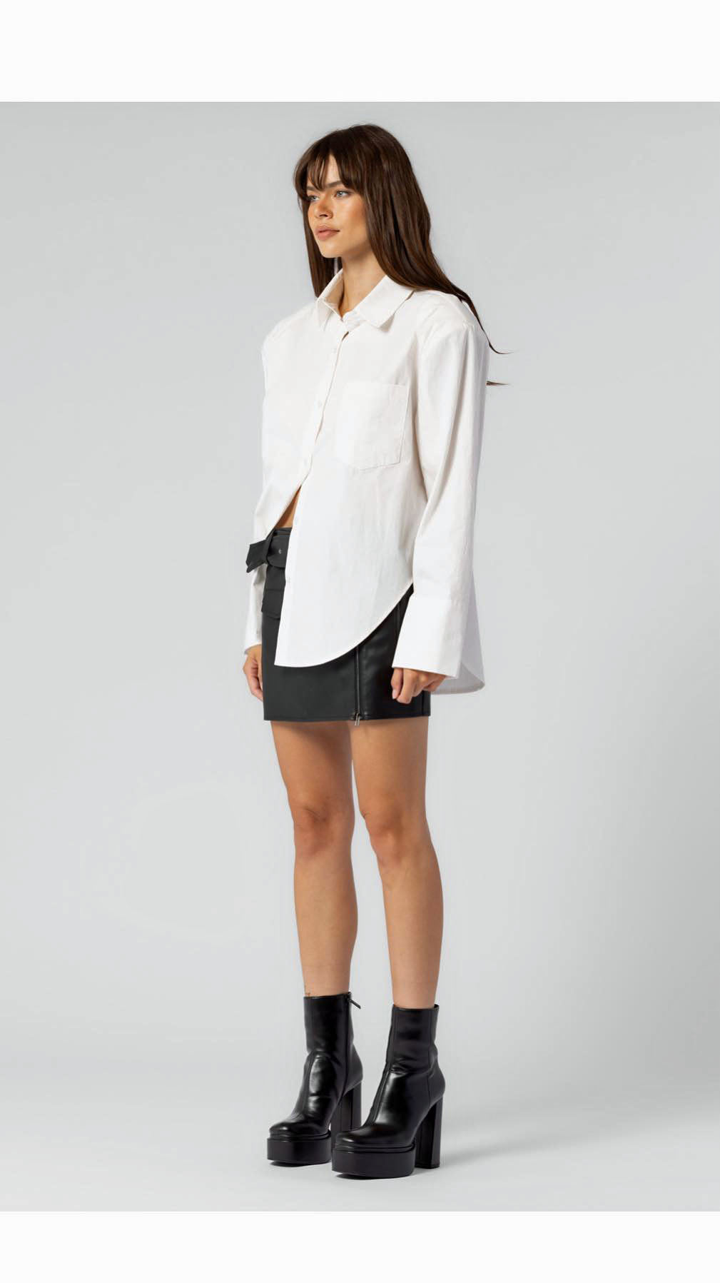 Elevate your wardrobe with this stylish long-sleeve shirt designed for the modern woman. Featuring oversized cuffs, this shirt effortlessly blends comfort with contemporary fashion. The extended sleeves add a touch of sophistication, creating a versatile piece that transitions seamlessly from casual to chic. Crafted with attention to detail, the shirt combines a flattering fit with the bold statement of large cuffs, making it a must-have for those who appreciate both comfort and style. Embrace a fashion-forward look with this distinctive long-sleeve shirt, perfect for any occasion.